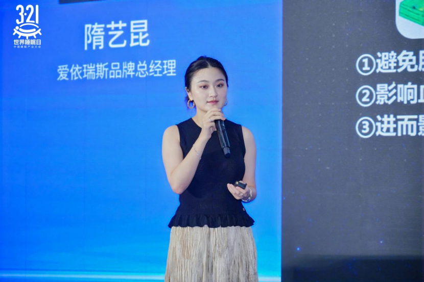 3月21日,在广州举行的第八届中国睡眠产业大会暨睡眠生态展“世界睡眠日·睡眠创新联合发布会”上,爱依瑞斯品牌总经理隋艺昆受邀出席活动,并围绕健康睡眠微环境调控、深睡体验升级及睡眠解决方案创新进行现场分享,系统呈现品牌在健康深睡眠领域的技术探索与实践路径。